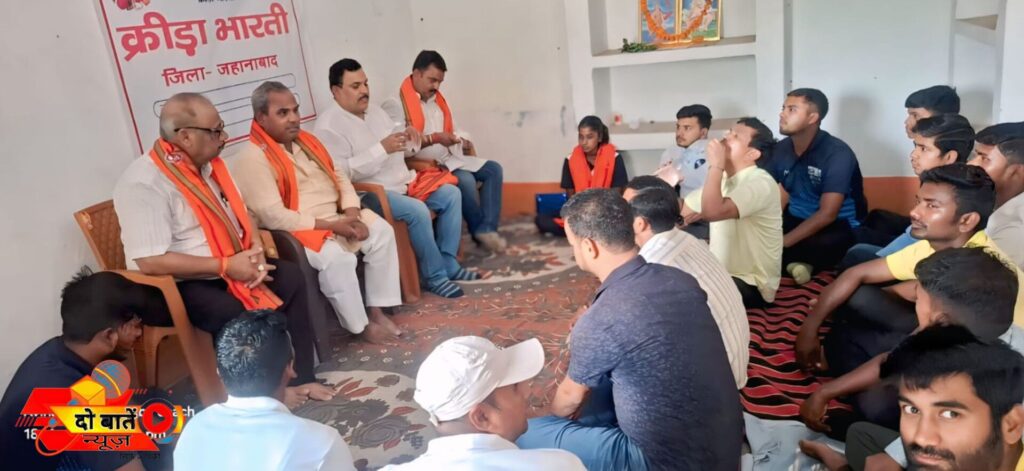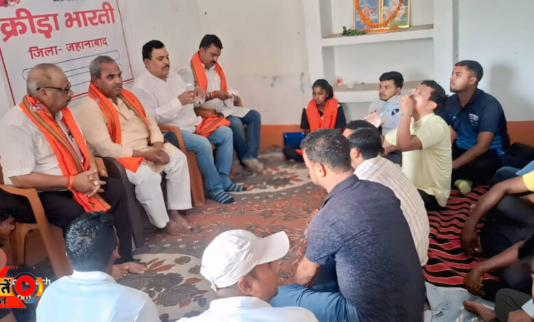 क्रीड़ा भारती जिला अध्यक्ष निरंजन कुमार बबलू के अध्यक्षता में “क्रीड़ा भारती” का बैठक जहानाबाद के निजी सभागार में संपन्न हुआ। बैठक की शुरुआत खेल गीत एवं हनुमान जी, भारत माता के चित्र पर पुष्प अर्पित कर किया गया। उसके बाद आगत अतिथियों का स्वागत पुष्प एवं अंग वस्त्र से किया गया।