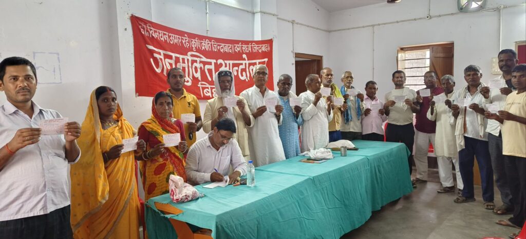 आज दिनांक 1 जून 2025 को डॉ विनयन आश्रम जन मुक्ति आंदोलन कार्यालय ग्राम नवादा में एक बैठक की गई जिसमें जन मुक्ति आंदोलन के सक्रिय कार्यकर्ता ने भाग लिये जिसकी अध्यक्षता जनमुक्ति आंदोलन के महासचिव हरिलाल प्रसाद सिंह ने की, इस कार्यक्रम में जनमुक्ति आंदोलन के सक्रिय कार्यकर्ताओं को वर्ष 2025 का सदस्य बनाकर सदस्यता अभियान का शुरुआत गांव गांव में करने का निर्णय लिया गया एवं बेघर भूमिहीन को सरकार के नियमावली के अनुसार 5 डिसमिल जमीन उपलब्ध कराने के मुद्दे पर विस्तृत चर्चा की गई इस कार्यक्रम में स्वास्थ्य, शिक्षा, एवं ग्रामीण समस्याओं पर भी विचार कर इसे सुलझाने के दिशा में ठोस कदम उठाने का निर्णय लिया गया।आगामी बिहार विधानसभा चुनाव 2025 के मद्देनजर गांव गांव में ग्रामीण के ज्वलंत मुद्दों को ग्रामीणों द्वारा उठाने का निर्णय लिया गया।