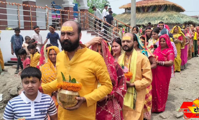 प्रखंड क्षेत्र के बरावा में आयोजित भगवान शिव के पांच दिवसीय प्राण प्रतिष्ठा महायज्ञ को लेकर रविवार को भव्य कलश यात्रा निकाली गई। यह यात्रा वैदिक मंत्रोच्चार और विधि-विधान के साथ नवनिर्मित शिव मंदिर परिसर से शुरू हुई। कलश यात्रा यज्ञ स्थल से देवी मंदिर और गांव का भ्रमण करते हुए लालमन बिगहा स्थित दरधा नदी के तट पर पहुंची। वहां विद्वान पंडितों द्वारा वैदिक विधि-विधान के अनुसार कलशों में जल भरा गया। उल्लेखनीय है कि दरधा नदी में जल उपलब्ध कराने के लिए पहले खुदाई कर पानी निकाला गया था। जल भरने के बाद सभी श्रद्धालु जय श्रीराम और अन्य धार्मिक नारों के साथ पुनः यज्ञ स्थल की ओर लौटे। पूरे मार्ग में भक्ति और श्रद्धा का वातावरण व्याप्त रहा। कलश यात्रा में करीब 500 महिलाएं एवं कन्याएं शामिल हुईं, जिन्होंने कलश लेकर जल भरा और यज्ञ स्थल तक पहुंचीं। कलश यात्रा के आगे आगे रथ पर स्वामी जी विराजमान थे। वहीं कई घोड़े भी साथ में चल रहे थे। बैंड बाजा की धुन पर सभी श्रद्धालु झूम रहे थे। पवित्र जल लाने के बाद यज्ञ स्थल पर वैदिक मंत्रोच्चार के बीच कलशों की स्थापना की गई। श्रद्धालुओं ने विधिपूर्वक पूजा-अर्चना कर यज्ञ स्थल की परिक्रमा की। आयोजन समिति के अनुसार, यह महायज्ञ आगामी 5 जून को संपन्न होगा। यज्ञ स्थल पर संध्या कालीन प्रवचन एवं दिन में भंडारे का भी आयोजन किया गया है। समिति के सदस्यों ने बताया कि पूरे समारोह में विविध धार्मिक कार्यक्रम आयोजित किए जाएंगे। रोजाना सुबह-शाम पूजा, हवन, प्रवचन और भजन-कीर्तन का आयोजन होगा।