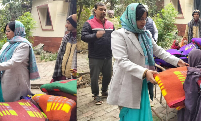 असहायों की सर्दी बनी आसानपूर्व जिला पार्षद रेखा शर्मा ने सैकड़ों गरीबों को बांटे कंबल