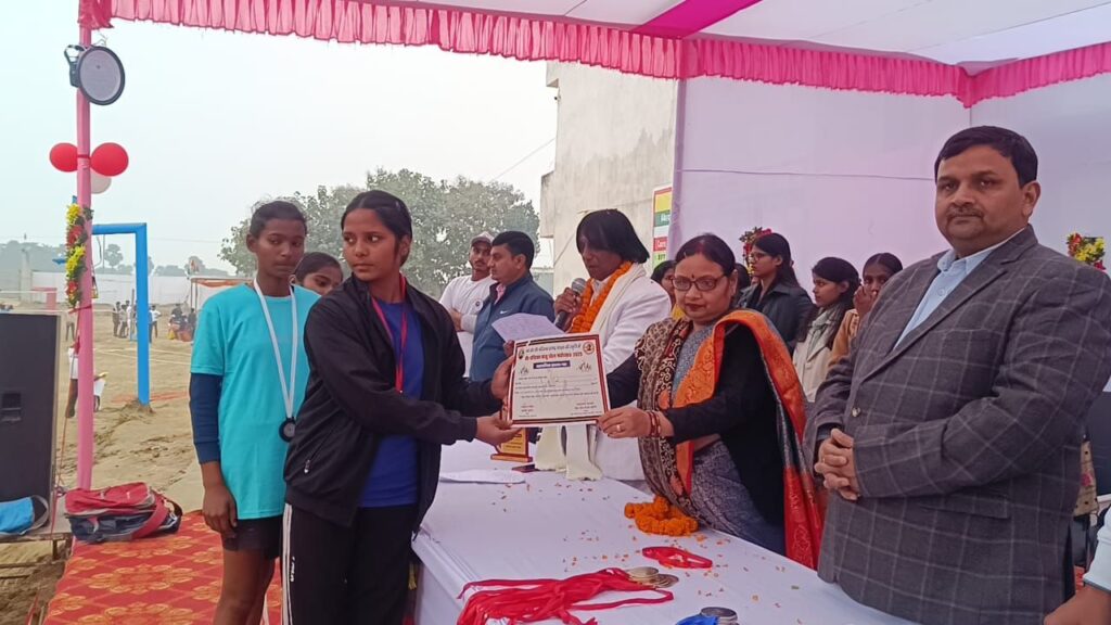 рд╕рдорд╛рдкрди рд╕рд╣ рдкрд╛рд░рд┐рддреЛрд╖рд┐рдХ рд╡рд┐рддрд░рдг рд╕рдорд╛рд░реЛрд╣ рдореЗрдВ рдореБрдЦреНрдп рдЕрддрд┐рдерд┐ рдорд╛рдВ рдХрдорд▓рд╛ рдЪрдВрджреНрд░рд┐рдХрд╛ рдЬреА рд╡рд┐рджреНрдпрд╛рдкреАрда, рдЬрд╣рд╛рдирд╛рдмрд╛рдж рдХреЗ рдЪреЗрдпрд░рдореИрди рдбреЙ. рд╕рдВрдЬрдп рдХреБрдорд╛рд░ рдПрд╡рдВ рд░рд╛рдорд▓рдЦрди рд╕рд┐рдВрд╣ рдпрд╛рджрд╡ рдХреЙрд▓реЗрдЬ, рдЬрд╣рд╛рдирд╛рдмрд╛рдж рдХреА рдкреНрд░рд╛рдЪрд╛рд░реНрдпрд╛ рдордВрдЬреВ рдХреБрдорд╛рд░реА рдиреЗ рдЦрд┐рд▓рд╛рдбрд╝рд┐рдпреЛрдВ рдХреЛ рдЯреНрд░реЙрдлреА рдПрд╡рдВ рдореЗрдбрд▓ рджреЗрдХрд░ рд╕рдореНрдорд╛рдирд┐рдд рдХрд┐рдпрд╛ред рдЕрддрд┐рдерд┐рдпреЛрдВ рдиреЗ рдХрд╣рд╛ рдХрд┐ рдЦреЗрд▓ рд╕рд░реНрд╡рд╛рдВрдЧреАрдг рд╡рд┐рдХрд╛рд╕ рдХреЗ рд╕рд╛рде-рд╕рд╛рде рднрд╛рдИрдЪрд╛рд░рд╛, рдЕрдиреБрд╢рд╛рд╕рди рдФрд░ рд░рд╛рд╖реНрдЯреНрд░рдкреНрд░реЗрдо рдХрд╛ рд╕рд╢рдХреНрдд рдорд╛рдзреНрдпрдо рд╣реИред