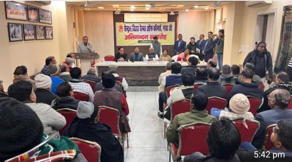 गयाजी के के.पी. रोड स्थित सेंट्रल बिहार चैंबर ऑफ कॉमर्स, गया द्वारा रविवार को एक भव्य अभिनंदन समारोह का आयोजन किया गया। कार्यक्रम में बिहार सरकार के मंत्री संतोष कुमार सुमन, विधायक दीपा मांझी, विधायक ज्योति मांझी, पूर्व विधायक अनिल कुमार, जदयू महानगर अध्यक्ष राजकुमार प्रसाद उर्फ राजू बरनवाल तथा केन्द्रीय चैंबर ऑफ कॉमर्स के अध्यक्ष विपेन्द्र अग्रवाल मुख्य रूप से उपस्थित रहे।